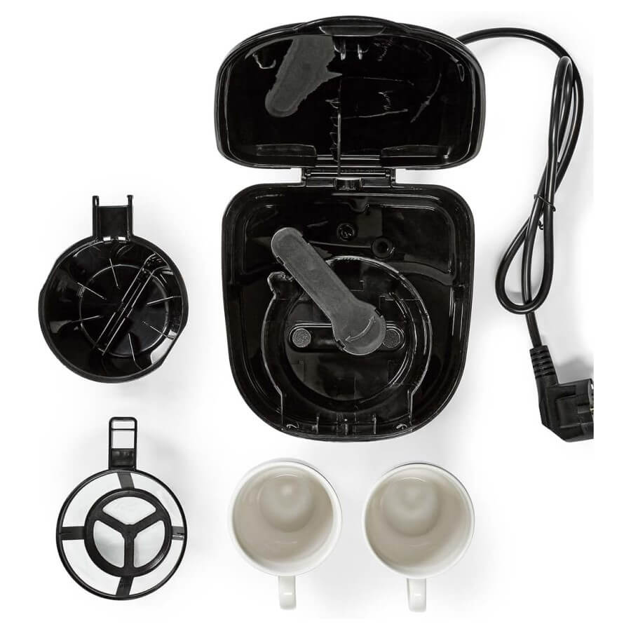 Prepara un delicioso café sin complicaciones y en poco tiempo con la Cafetera eléctrica de 2 tazas con capacidad de 250 ml, incluye 2 pocillos mini mug de cerámica. Cuenta con goteo doble, filtro permanente de nylon, indicador de nivel de agua, botón LED y apagado automático.