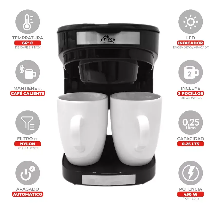 Cafetera ALTEZZA 2 Tazas + 2 Mug mini