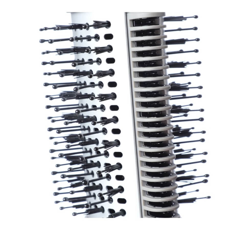 Diseñado con tecnología PTC (Positive Temperature Coefficient), que permite una distribución de calor constante y segura. Este cepillo incluye plaquetas calefactoras y peines laterales efecto plancha que estilizan sin sobrecalentar. Sus 3 niveles de temperatura y 2 velocidades se adaptan a cualquier tipo de cabello, desde fino hasta grueso.