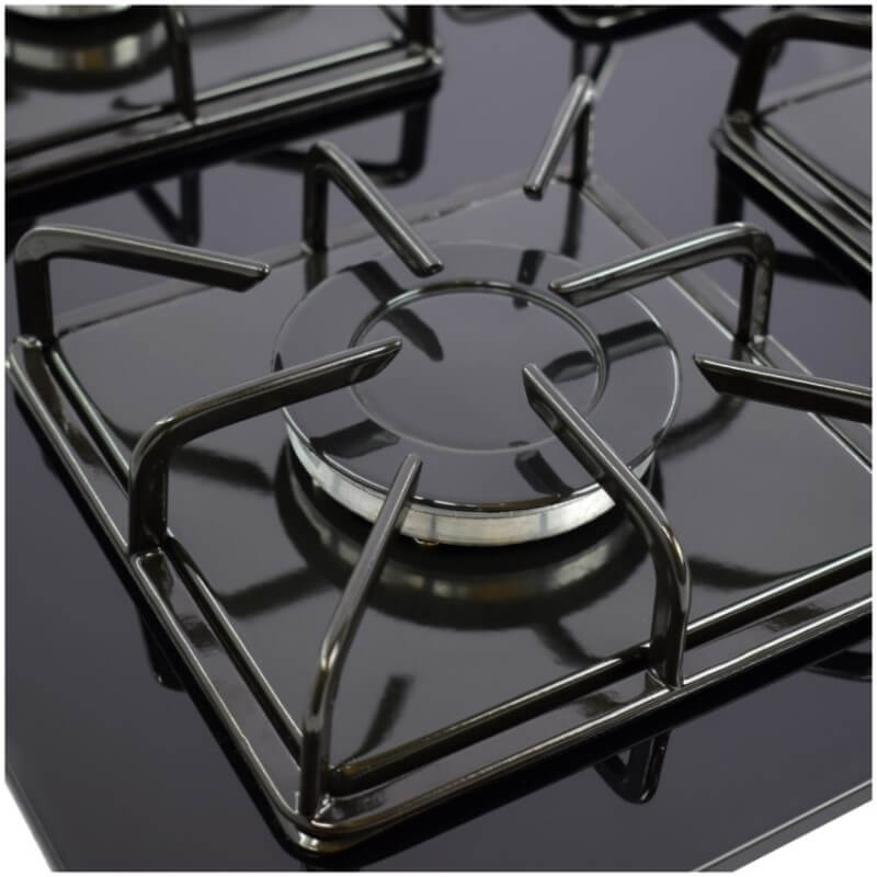Estufa en vidrio templado color negro de 8 milímetros de alta resistencia. Tiene 4 parrillas en platina, con 8 puntos de contacto para una mejor estabilidad de los recipientes. Cuenta con encendido eléctrico, que la hace más práctica y ahorra tiempo al momento de encender la estufa. Estufa fácil de limpiar, recomendamos no limpiar con esponjilla o algún material abrasivo.
