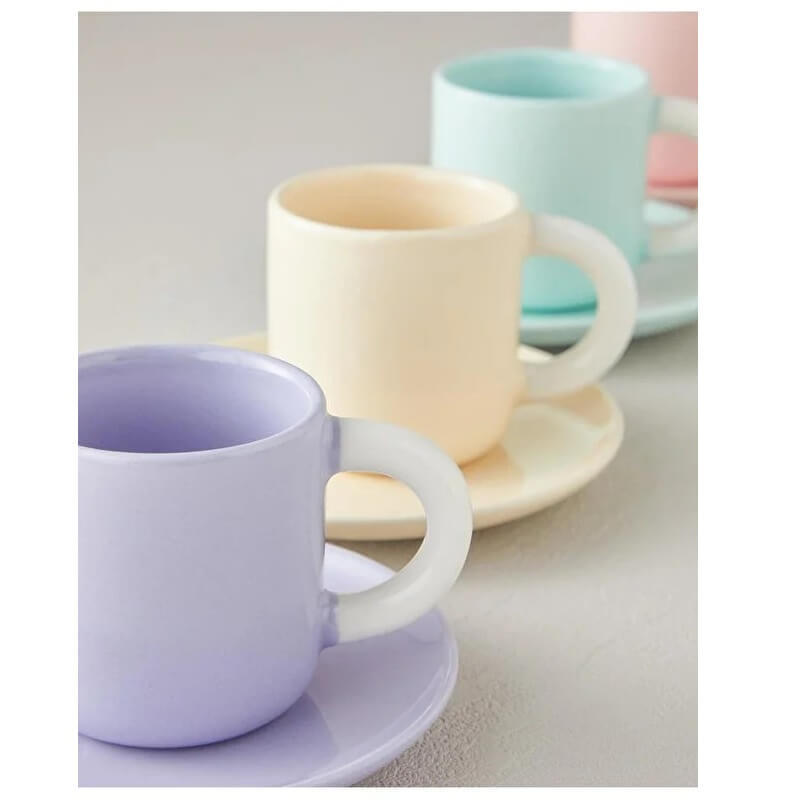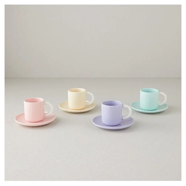 Este set de pocillos de colores pasteles, brindará a tu cocina y espacios un toque de ternura, ideal para servir el café y compartir de momentos únicos con tus personas especiales.